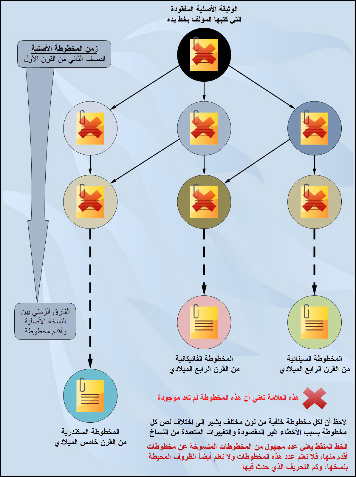 صورة تُوضِّح الفارق الزمني بين الأصل وأقدم مخطوطة