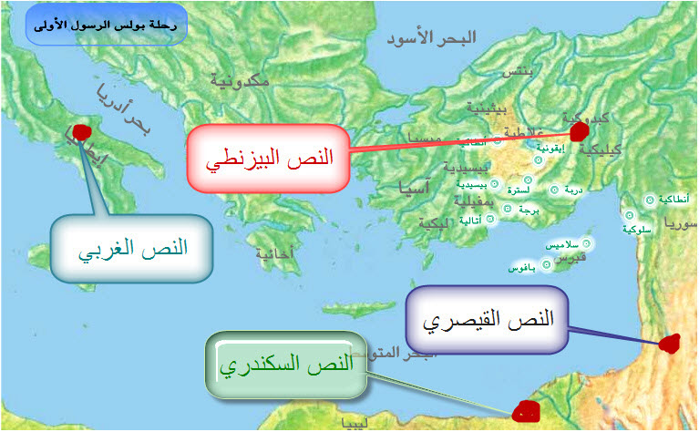 · التوزيع الجغرافي للشواهد. (النصوص اليونانية المختلفة)