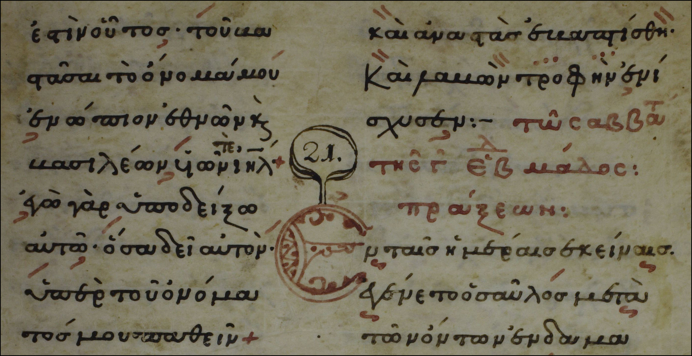· القراءات الكنسية (مكتوبة على الرُّقوق, بالأحرف الصَّغيرة, بمسافات بين الكلمات)